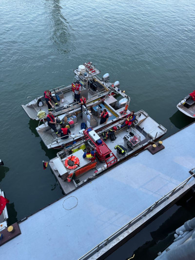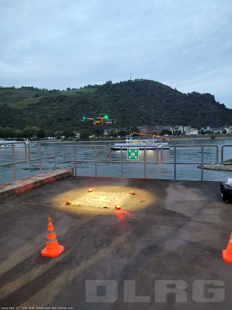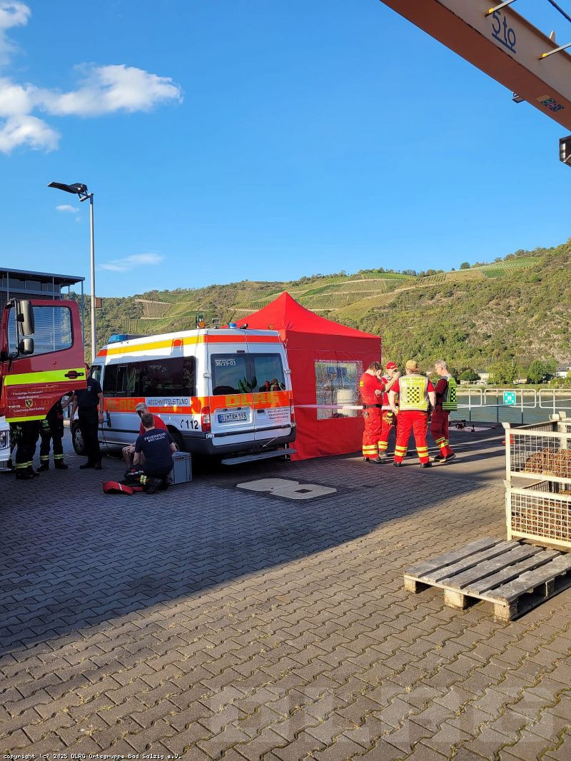 Zur schnellen Hilfe im Uferbereich positionierten sich zwei Strömungsrettertrupps der DLRG Rheinböllen und Simmern an den Rheintreppen und auf der Rheinterrasse. Auch der Brandschutz auf dem Wasser war abgesichert: Die Feuerwehren St. Goarshausen und Bingen unterstützten mit ihren Hilfeleistungslöschbooten, während die Besatzungen aus Werlau und St. Goar mit dem Mehrzweckboot St. Goar in Bereitstellung waren.