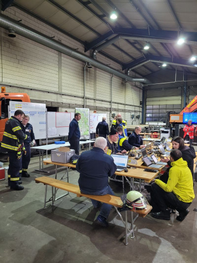 Insgesamt waren rund 300 Einsatzkräfte von Feuerwehr, DLRG, DRK, THW und Polizei sowie Mitarbeitende der Kreisverwaltung und der Verbandsgemeindeverwaltungen im Einsatz.